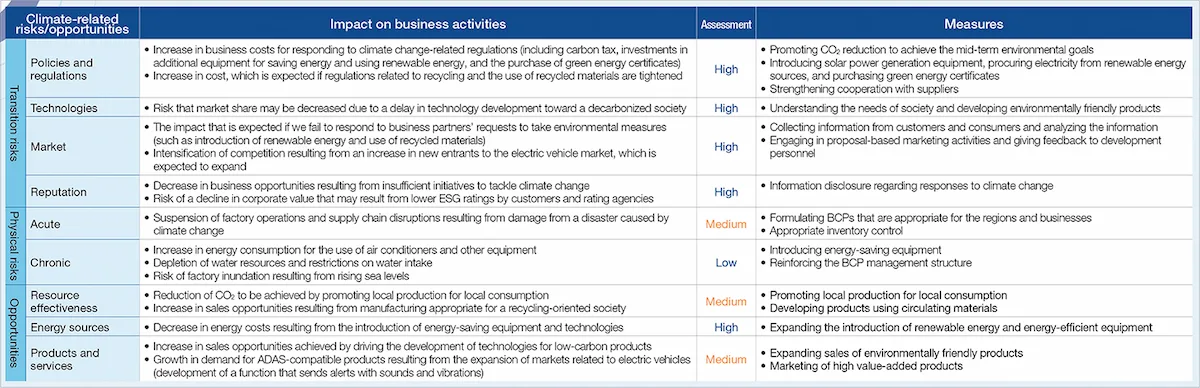 We reflected the identified risks and opportunities in the medium-term business plan. Moving forward, we will also consider the financial impact on the Company. We are conducting an analysis of the part of the automotive business, which is subject to a significant impact. We will continue the analysis by focusing on other businesses as well.