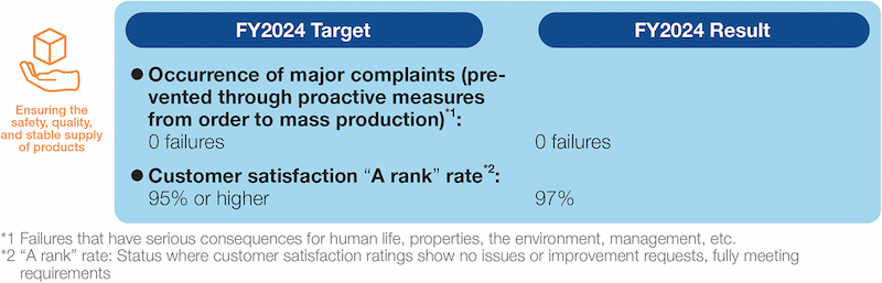 Under our customer-focused philosophy, our policy is to carry out quality assurance activities globally together with all of our employees to deliver safe, eco-friendly products of reliable quality.